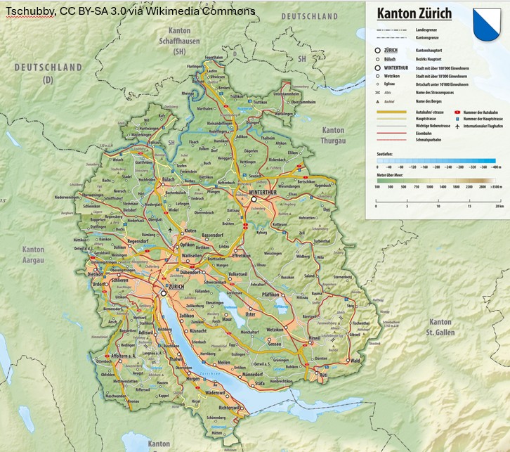 15 Kilometer südwestlich liegt der Flughafen Zürich.